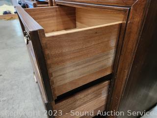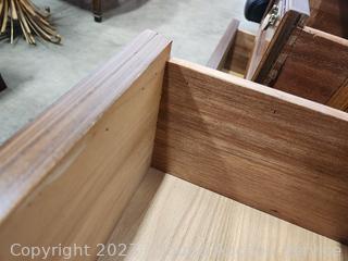 Dovetail joinery, appears to be solid wood construction. A few minor scuffs, overall great condition. 24" H x 26" W x 16" D. Matches the dresser in previous lot.