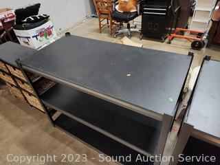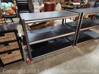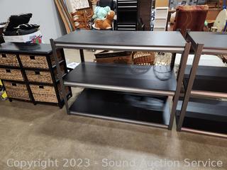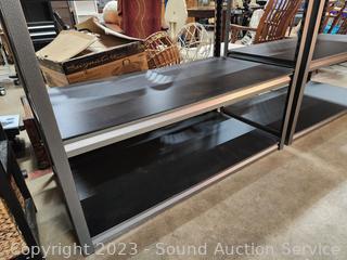 Black laminate shelves. 35" H x 48" x 24". In excellent condition.