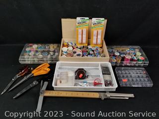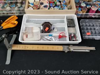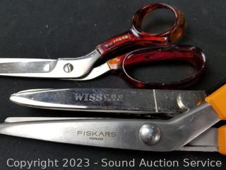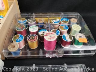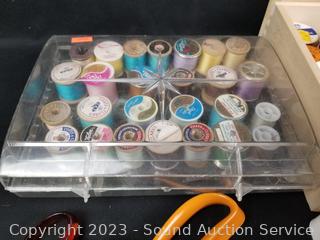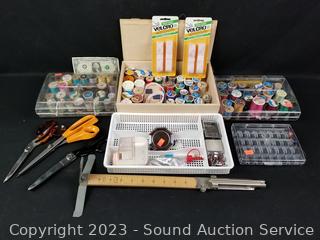 2 Pairs Wiss Scissors, Sewing Thread, Bobbins, etc. Refer to photos for more info.