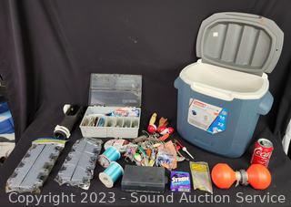 Lot #0220: Cooler & Assorted Fishing Tackle