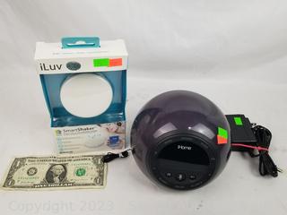 iHome Digital Alarm Clock light & tuner functioning. iLuv bed shaker has been opened, needs an app to work, untested.