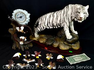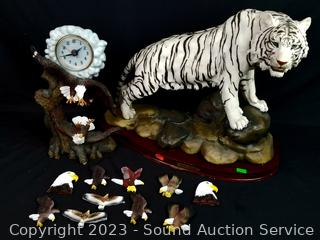 Lot #0318: Eagle Clock, Magnets & White Tiger Sculpture