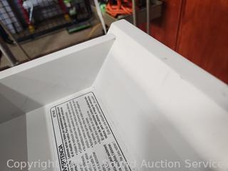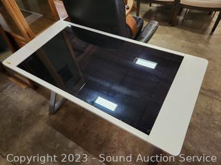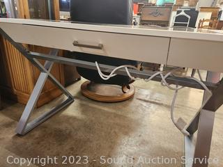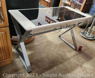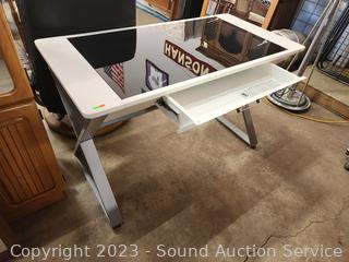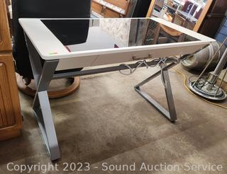 Lot #0004: Modern White & Black Glass Top Desk w/Power
