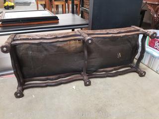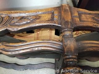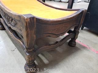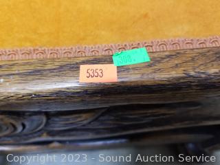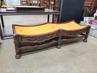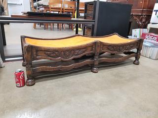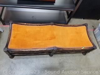 Lot #0308: Retro Orange Upholstered Carved Wood Bench
