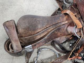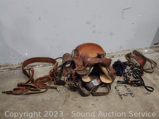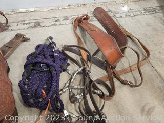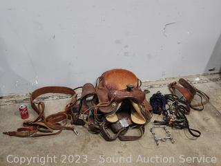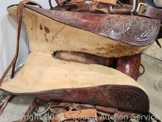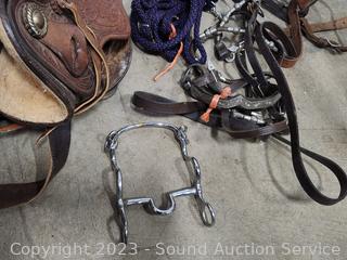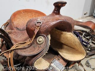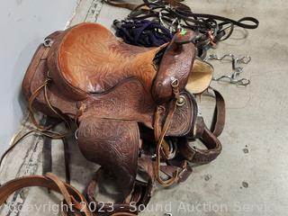 Lot #0301: Tooled Leather 15" Western Saddle, Bit Bridal, Lead
