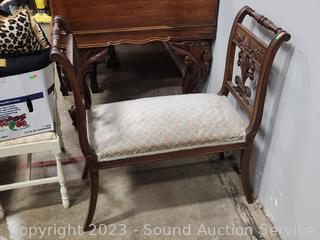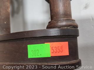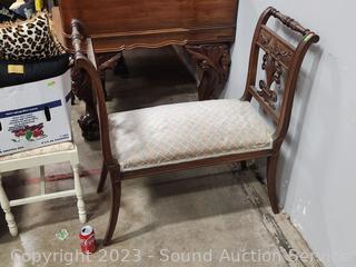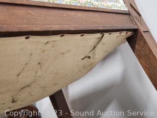 37" H x 36" L x 16" D x 19" to seat. Some scuffs with to finish.