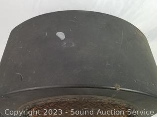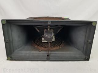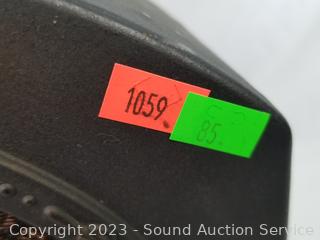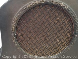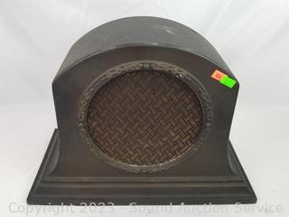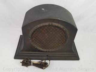 Don't see a brand. Untested, unknown condition, don't see a reason why it wouldn't be functioning. Some scuffs, wear to finish. 11" H x 15" x 7.5".