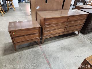 Lot #0012: Vtg. Dixie 6-Drawer Dresser & 2-Drawer Nightstand