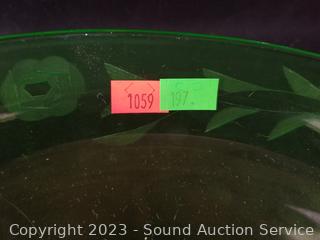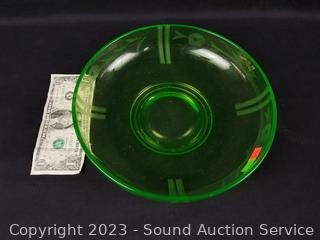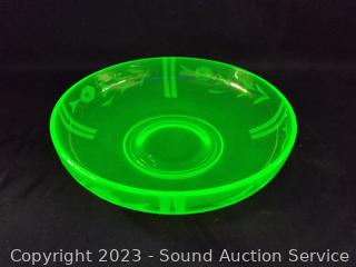 Lot #0197: Vtg. Uranium Etched Glass 9.5" Console Bowl