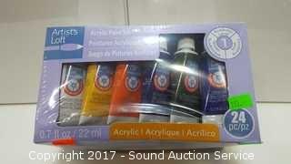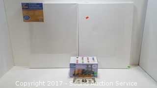 Lot #0193: NIP 24pc. Acrylic Paints & 16" x 20" Canvas Boards