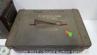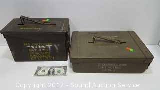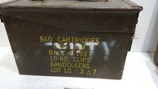 Includes: M139 ammunition tin, approx. 4" x 9" x 14", and M193 tin, approx. 7" x 6" x 12".