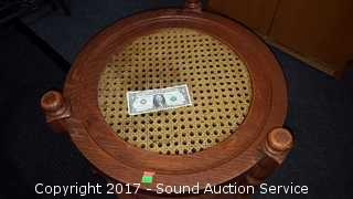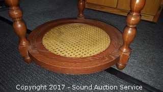 Lot #0014: Plastic Cane Top Two Tier Side Table