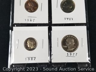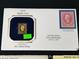 1972-U.C. Proof Set, 1962-1982 mixed Date Proof Set, FDI 90c Oliver Perry 22kt Gold Stamp. ATTN: We are not coin or currency experts or graders, please use your own judgement when bidding.