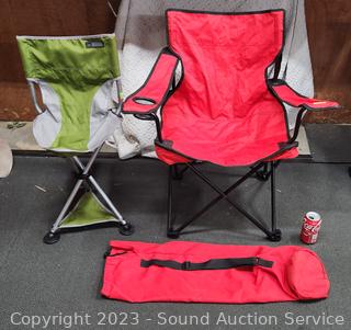 Lot #0226: 2 Folding Red & Green Camp Chairs