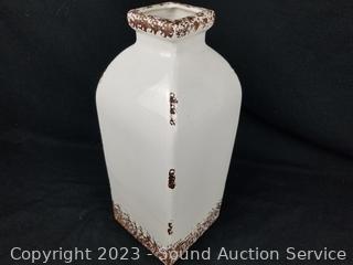 13" to 15" tall candleholders, 12" to 14" H x 7" to 8" Dia vases. Various faux? crazing, wear from use.