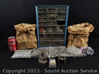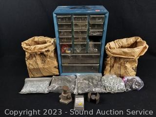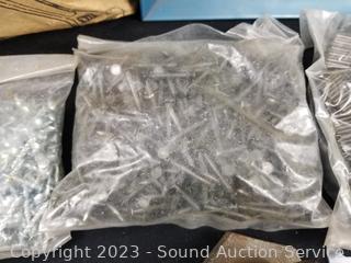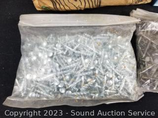 Nails, nuts bolts, electrical connectors, organizer. Refer to photos for lot contents.