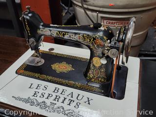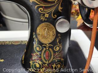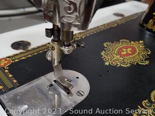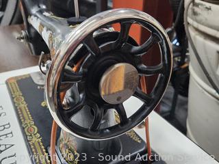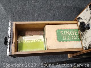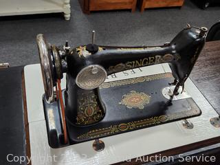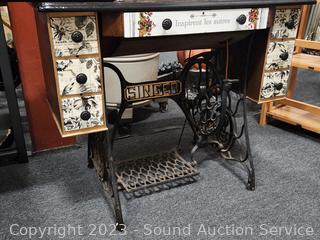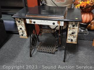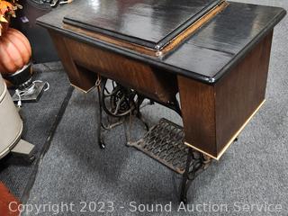Lot #0017: Antique 1910 Singer Treadle Sewing Machine w/Refinished Cabinet