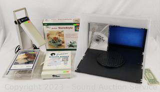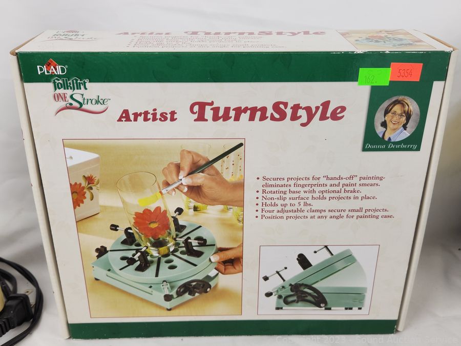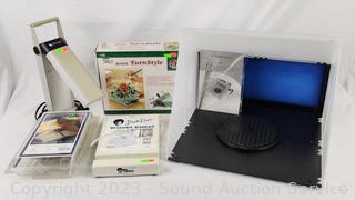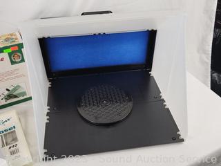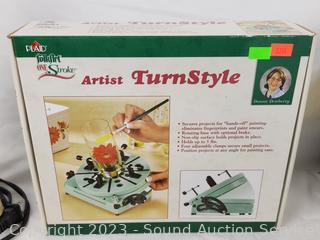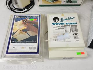 Bob Ross Travel Easel, Embossing Light Table, Artist Turnstyle Table, Foldout Spray Booth, Ottlite Task Light.