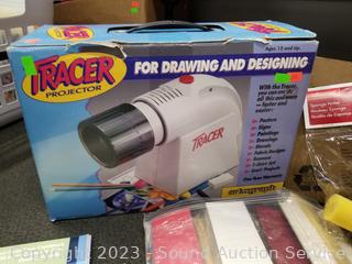 Tracer projector, assorted stickers, card stock, designer paper & more. Refer to photos for more info.