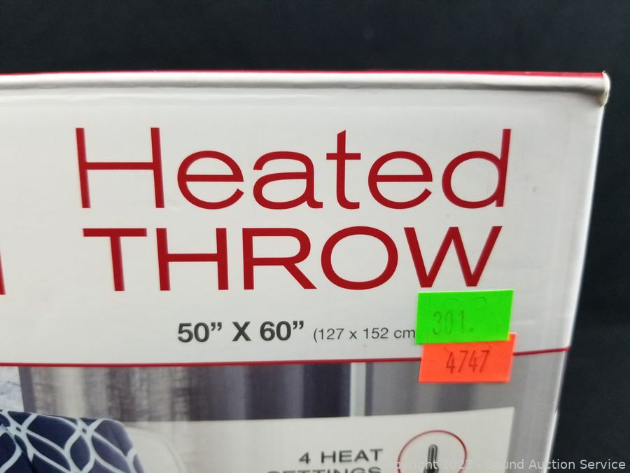 Lot #0301: Brookstone Blue/White Heated Plush Throw Blanket