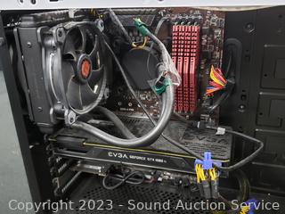 27" Dell monitor with HDMI, DVI, Display Port, VGA ports, USB keyboard & mouse, Phanteks Tower w/Intel i7 8th Gen 8700K CPU, 32GB DDR4 RAM, Geforce GTX1080 Ti GPU, CPU Radiator Cooler, MSI Z370-APro motherboard, 240GB SSD & HD (unsure on the size). Password protected PC needs wiped. By Cyberpower. Descent gaming PC from a few years ago. Solid GPU & CPU for there time, still more then enough power for most games. Even now the GPU alone is a few hundred dollars refurbished.