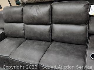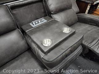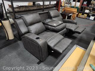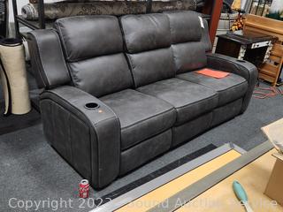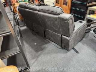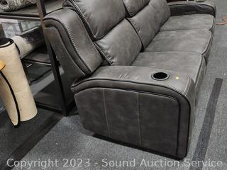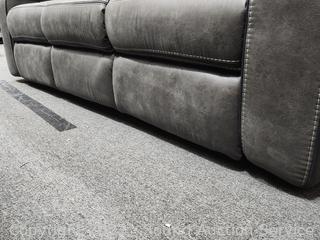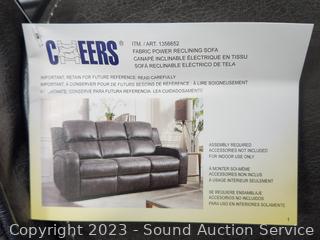 Lot #0002p: Like New Cheer Gray Fabric Power Reclining Sofa