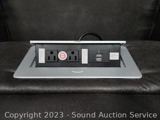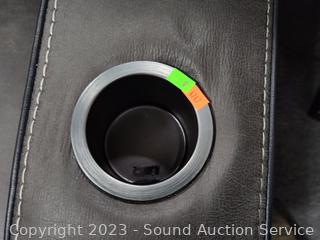 Brand new, we removed from packaging to verify condition & test. With 4 cup holders, 2 power & 2 USB outlets. 38" H x 88" W x 19" to seat.