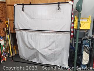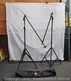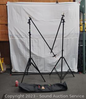 Comes with 2 tripods, diffuser frame, 76" x 72" diffuser & storage bag.