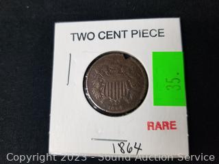 Lot #0035: Rare Antique 1864 Two Cent Piece