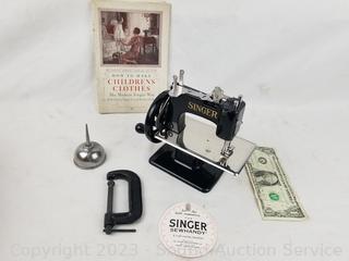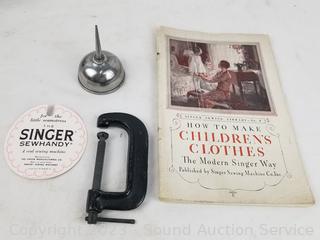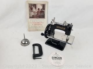 Comes with "How to Make Children's Clothing", case, oil can, clamp, cover. In excellent working condition.