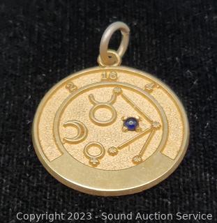 Lot #0025r: 14K Gold & Sapphire Taurus Zodiak Pendant