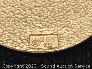 Set w/one small sapphire. Marked 14k, held on acid test, signed R&B. Loop ring did not test gold. TW: 3.34g.