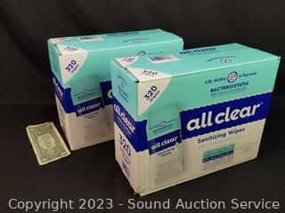 Lot #0048: (2) 320ct All Clear Household Sanitizing Wipes