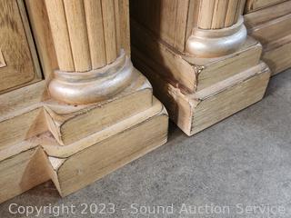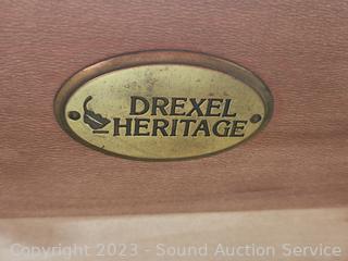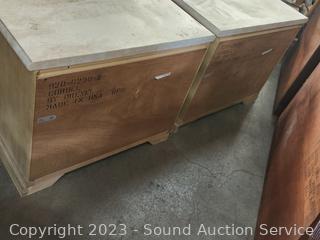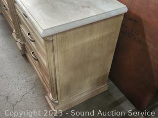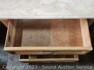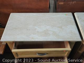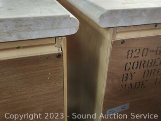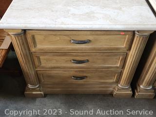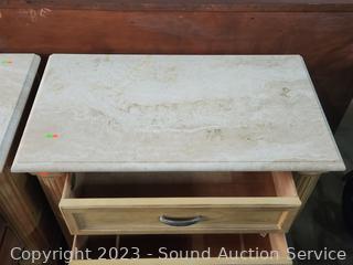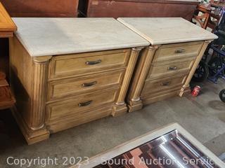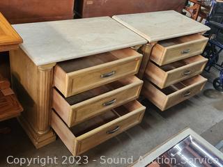 Lot #0002: 2 Vtg. Drexel Heritage 3-Drawer Travertine Top Tables