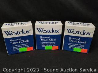 Lot #0124: 3 Westclox Keywound Travel Alarm Clocks