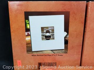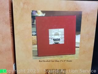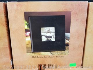 Lot #0064: 5 Black/White/Red Beveled Cut Glass 3x3" Picture Frames