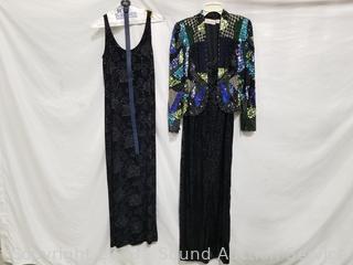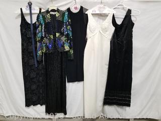 Laurence Kazar Sequin Beaded, Black Sheer Dress, Gail Garner Black Beaded, Black Beaded Fringe & White Venus. All in great condition. Don't see any issues.