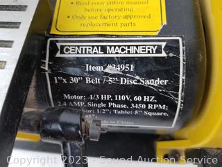 Lot #0176: Central Pneumatic 30x1" Belt & 5" Disc Sander System