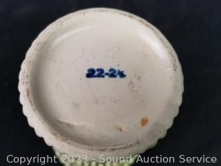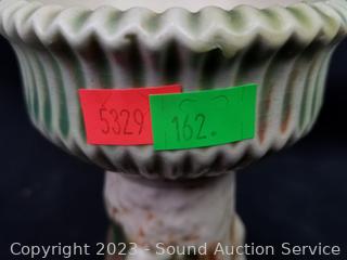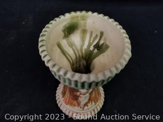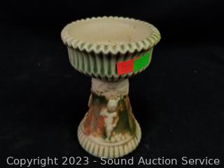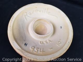 Some wax residue inside Donatello vase, blue tamped, numbered, no Roseville mark. Cosmos vase has a broken handle, comes w/the pieces, embossed mark on the bottom "Roseville USA #954-10". 5" H x 3.5" Dia & 10.25" H x 5" Dia.