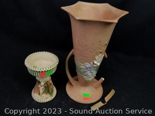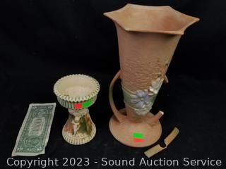 Lot #0162: Roseville 1915 Donatello & 1939 Pink Cosmos Pottery Vases