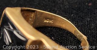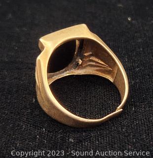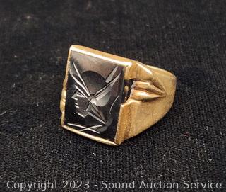 Lot #0120: 10K Gold Carved Hematite Men's Ring S:9