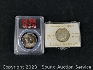 Lot #0095: 1975 UNC Lost Year & 1964 90% Silver Kennedy Half Dollars