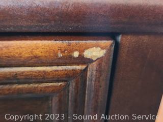 Comes with some hanging file folders, for standard or legal size files. Some scuffs, wear to finish. Overall great condition. Ball bearing drawer guides. 41" H x 20.5" W x 16" D.