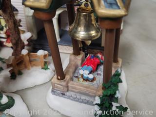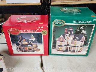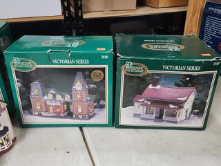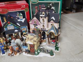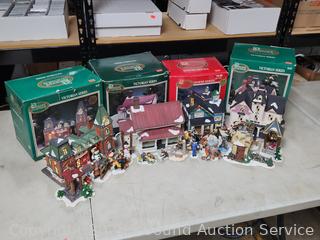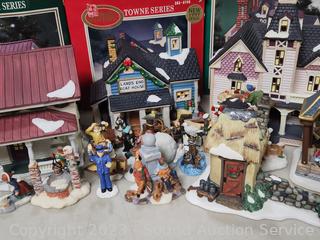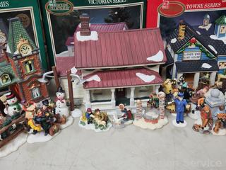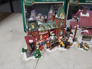 Lot #0232: 4 Dicken's Porcelain Lighted Houses & 6pc Resin Figures