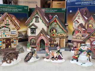Lot #0283: 5 Santa Workbench Porcelain Lighted Houses