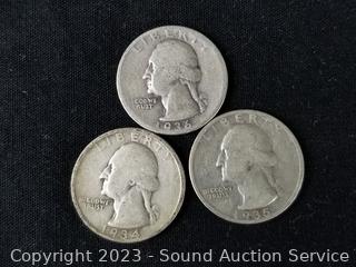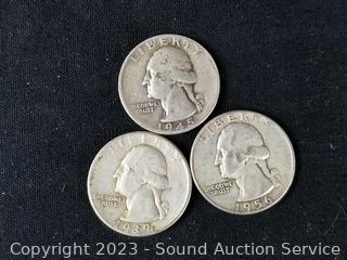 Lot #0114: (8) 1934-56 90% Silver Washington Quarters