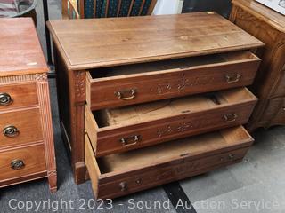 Lot #0012: Antique Oak 3-Drawer Chest/Dresser