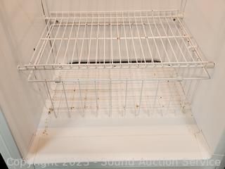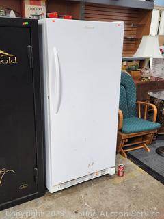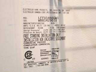 Appears to be functioning as intended. Dirty from use, could use a thorough cleaning, some rust spots on the front. 60.5" H x 28" W x 28.5" D. Model LFFU1466GW1, Serial WB81429010. Manufactured in 2008.