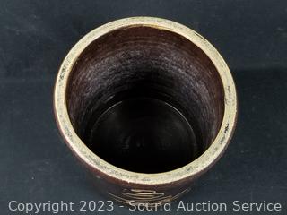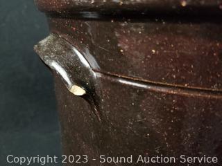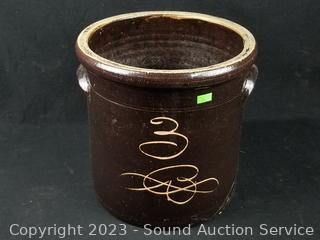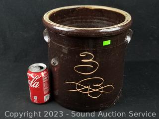 Embossed with a 3 & signature. Has a chip on 1 handle. 10.5" H x 10.5" Dia.