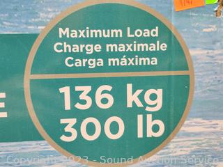 Appear unused, packaging has some damage. 300lb capacity.
